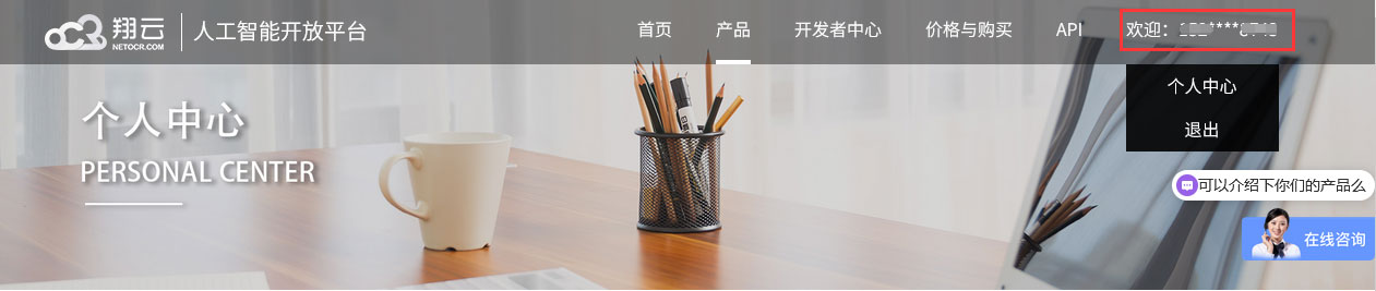 (1)注册成功后点击右上角的账号名称-个人中心,进入用户管理页面: